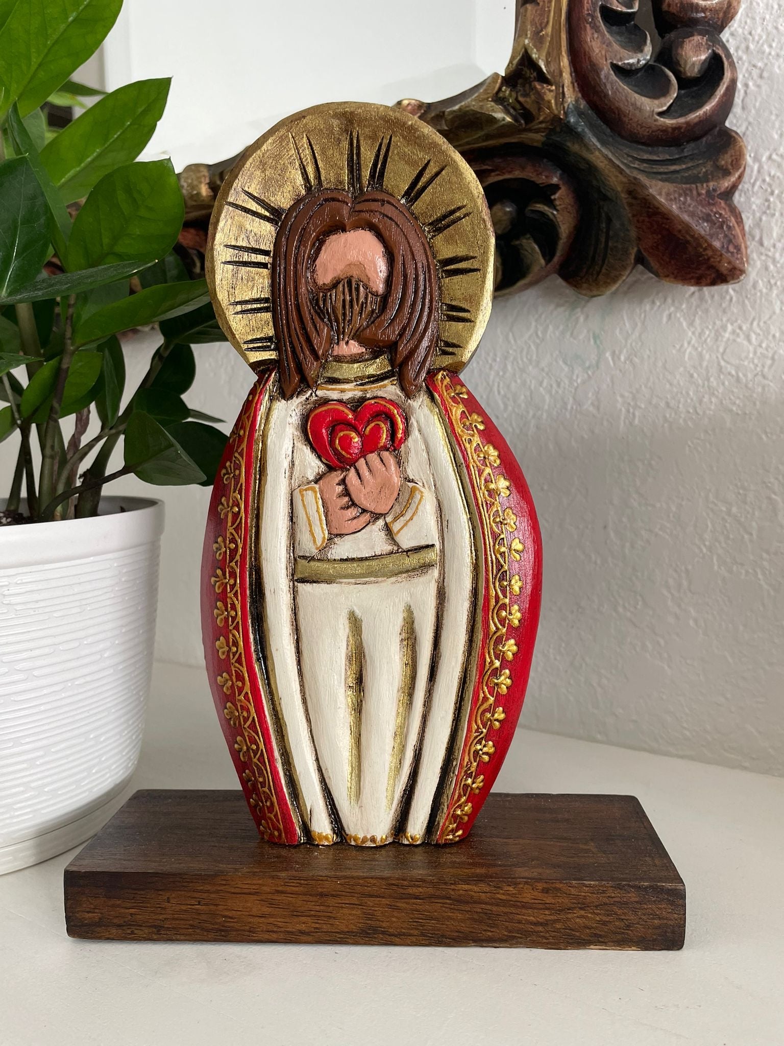 Sagrado Corazón Tallado y pintado a mano en madera de Cedro! Hecho por artesanos Venezolanos